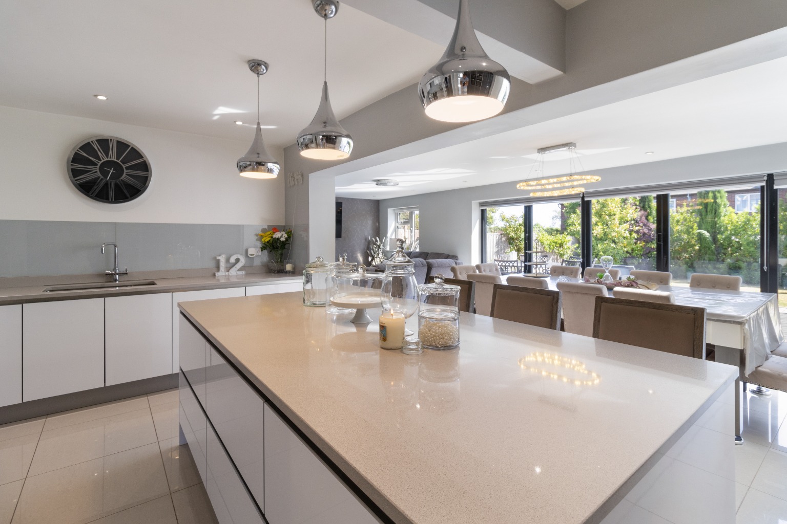Impressive extended detached house featuring our double bedrooms, two ensuites and two dressing rooms, open plan kitchen/dining/family room, further sitting room, double garage and extensive parking. Views of the Malverns.